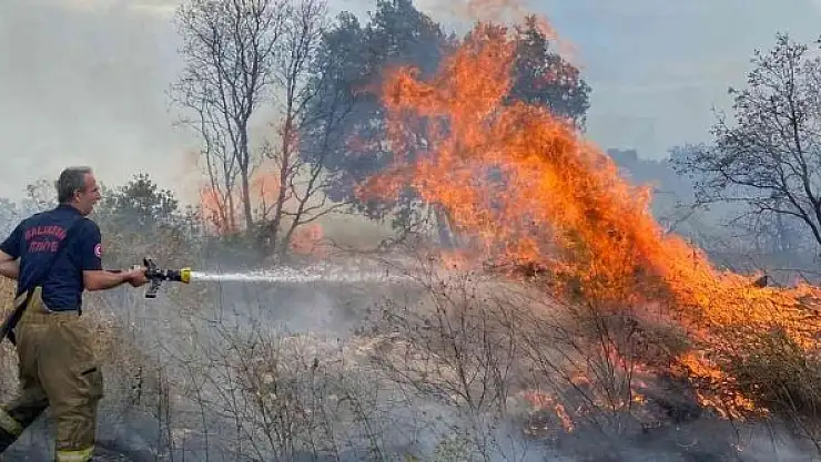 Balıkesir'in Bandırma ilçesine bağlı Aksakal Mahallesinde yol kenarında otluk alandaki yangın korkuttu.