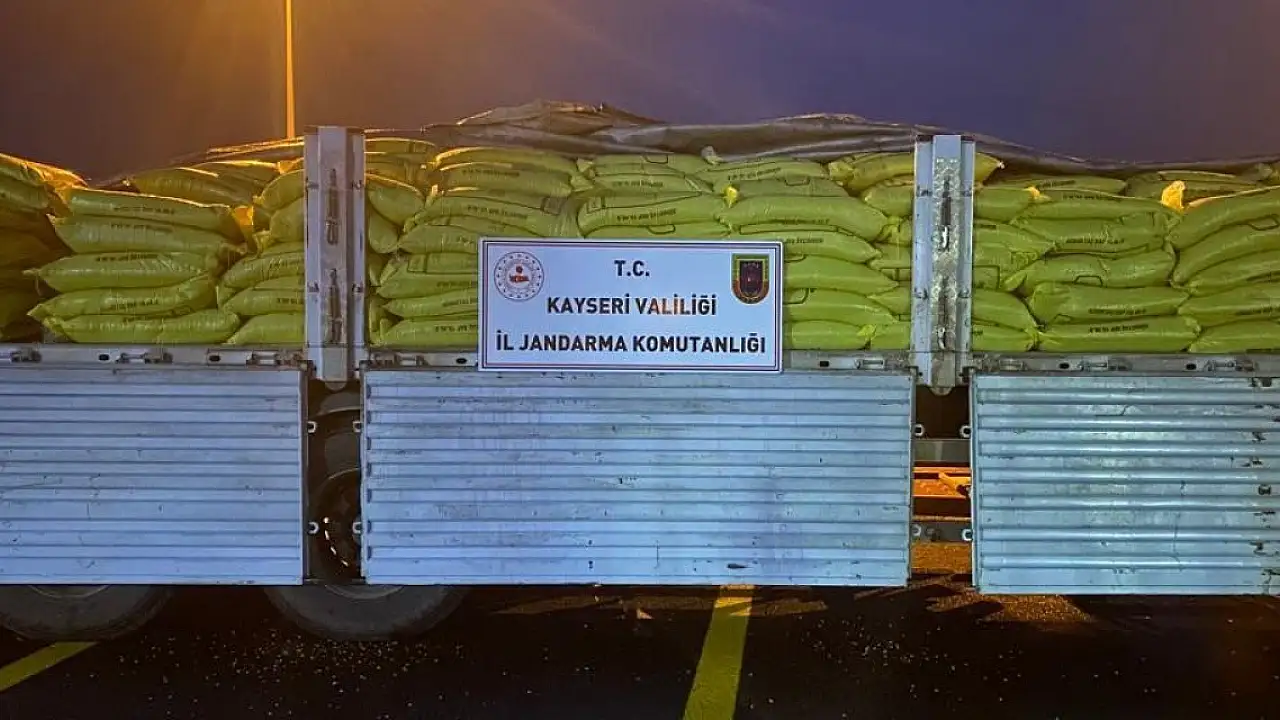 Kayseri İl Jandarma Komutanlığı ve Yeşilhisar İlçe Jandarma Komutanlığı KOM Şube Müdürlüğü ekipleri tarafından Yeşilhisar ilçesine bağlı Gülbayır Mahallesi'nde yol kontrolü uygulaması yapıldı. Yapılan uygulamada şüphe üzerine durdurulan bir tırda zirai bir gübre markasının sahte bandrolü basılmış 500 çuval içerisinde piyasa değeri yaklaşık 424 bin TL olan 26 bin 500 kilogram sahte gübre bulundu.