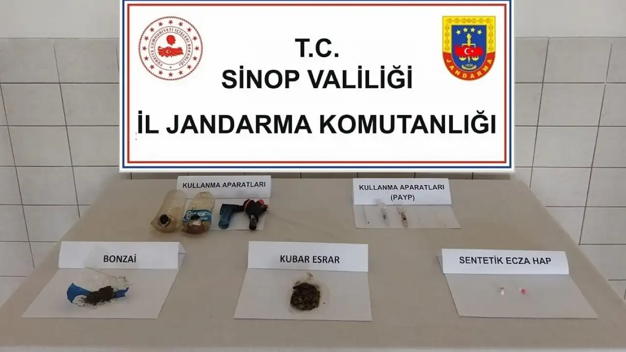 Sinop İl Jandarma Komutanlığınca, Saraydüzü ilçesinde düzenlenen yol kontrolü sırasında şüphelenilen bir araç ve içerisinde bulunan 3 kişiye yönelik arama yapıldı. Araçtan 50 gram kubar esrar, 70 gram bonzai, 2 adet sentetik uyuşturucu hap ile 7 adet kullanma aparatı ele geçirildi. Araçta bulunan 3 şüpheli şahıs gözaltına alınarak haklarında adli işlem başlatıldı.