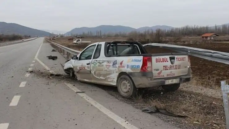 Sürücü köpeğe çarpmamak için direksiyon kırınca kontrolden çıkan kamyonet önce köpeğe, ardından da yol kenarındaki bariyerlere çarptı.
