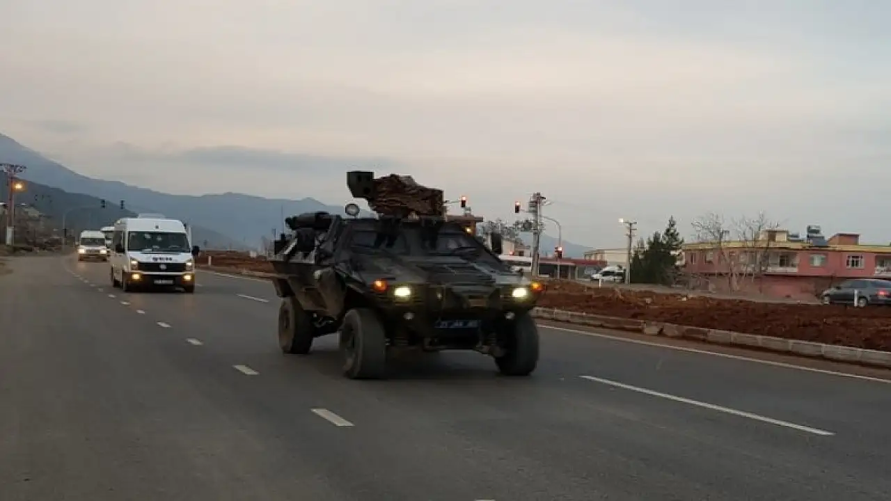 Türk Silahlı Kuvvetlerince (TSK) Afrin'de terör örgütleri PYD/PKK-DEAŞ'a yönelik yürütülen Zeytin Dalı Harekatı kapsamında görevli JÖH ve PÖH ekipleri ile güvenlik korucuları, İslahiye ilçesinde kurulan İçişleri Bakanlığı Müşterek Görev Merkezi'nden zırhlı araçlar ve minibüslerle sınıra doğru hareket etti.