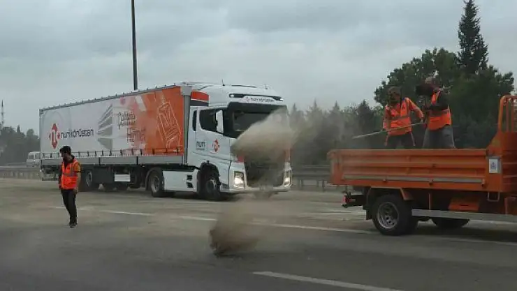 Kocaeli TEM Otoyolu'nda seyir halindeki bir araçtan dökülen mazot üzerine yol trafiğe kapatıldı.