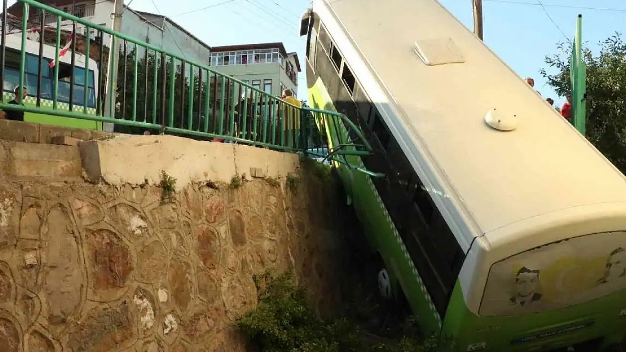 Kocaeli'nin Derince ilçesinde yolcu dolu özel halk otobüsü, rampa yukarı çıkamayınca geri geri kayarak, yolcu dolu başka bir otobüse çarptı, ardından 5 metre yükseklikteki bahçe duvarından uçtu.