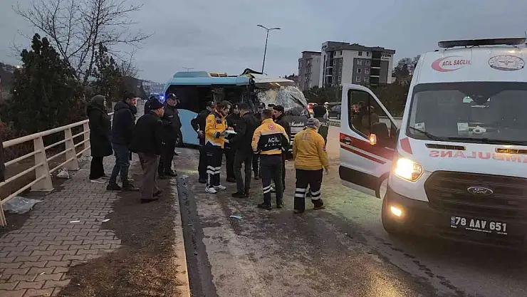 Karabük'te yolcu minibüsünün önünde seyreden yolcu otobüsüne çarpması sonucu 14 kişi yaralandı.