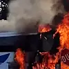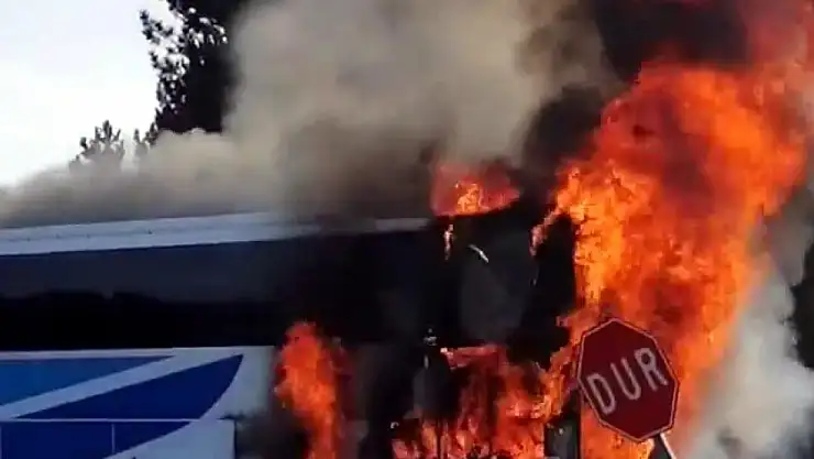 Yolcu otobüsü alev alev yandı