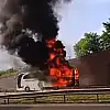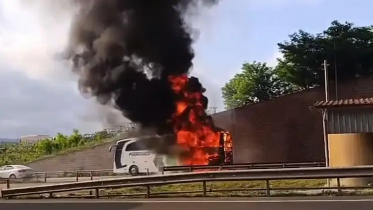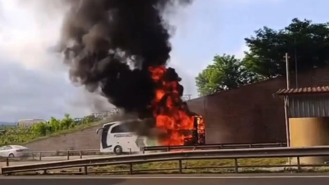 Yolcu otobüsü alev alev yandı