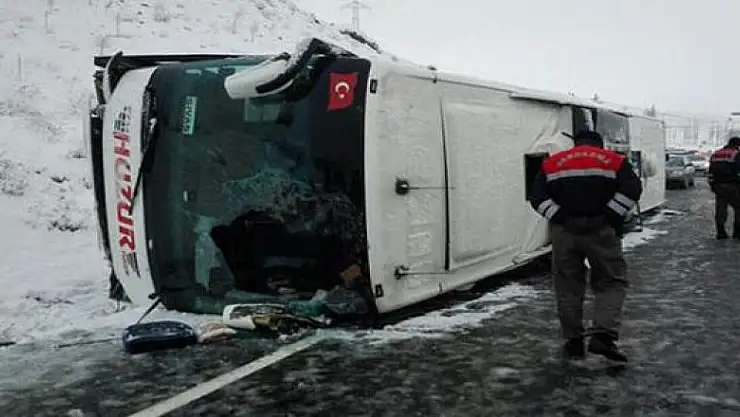 Yozgat'ta yolcu otobüsünün devrilmesi sonucu bir kişi öldü, 21 kişi yaralandı.