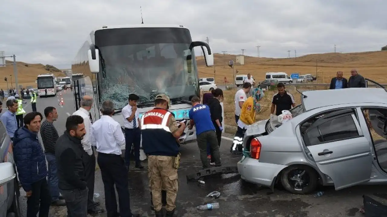 Sivas'ta yolcu otobüsü ile otomobilin çarpışması sonucu meydana gelen kazada 2 kişi öldü, 3 kişi yaralandı.