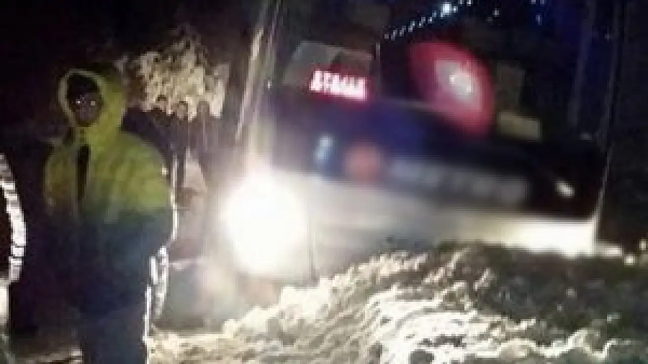 İnebolu-Kastamonu Kara Yolu'nda yoğun kar yağışı sebebiyle yoldan çıkan bir otobüs, kontrolden çıkarak kara saplandı.