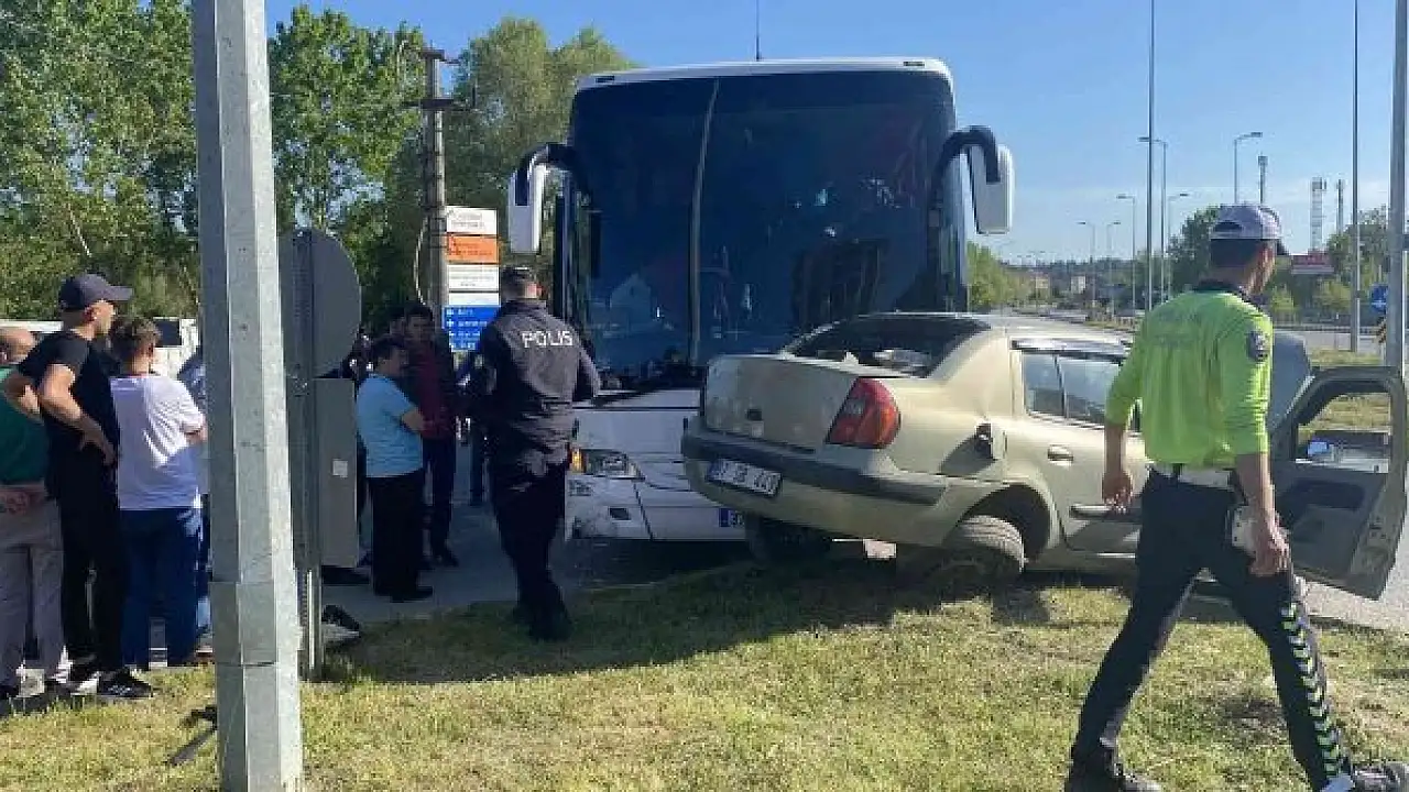 Yolcu otobüsü otomobille çarpıştı: 1 yaralı