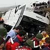 Kazanın ardından ters dönen yolcu otobüsü, İl Afet ve Acil Durum Müdürlüğü (AFAD) ekiplerince kaldırılmaya çalışılıyor.