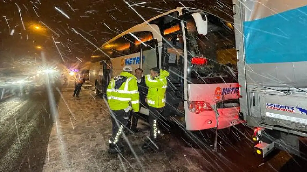 Anadolu Otoyolu'nun Düzce kesiminde tırla çarpışan yolcu otobüsündeki 6 kişi yaralandı.
