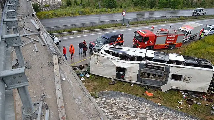 Çorum'da yolcu otobüsünün üst geçitten düşerek devrilmesi sonucu ilk belirlemelere göre 48 kişi yaralandı.