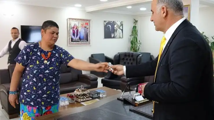 AYDIN'ın İncirliova ilçesinde zihinsel engelli Aslı Özakçakoca (31), yolda yürürken bulduğu içinde altın olan keseyi, sahibine ulaştırılması için belediyeye teslim etti. İncirliova Belediye Başkanı Aytekin Kaya, örnek davranışı nedeniyle Özakçakoca'ya bayramlık elbise ve ayakkabı hediye etti.