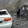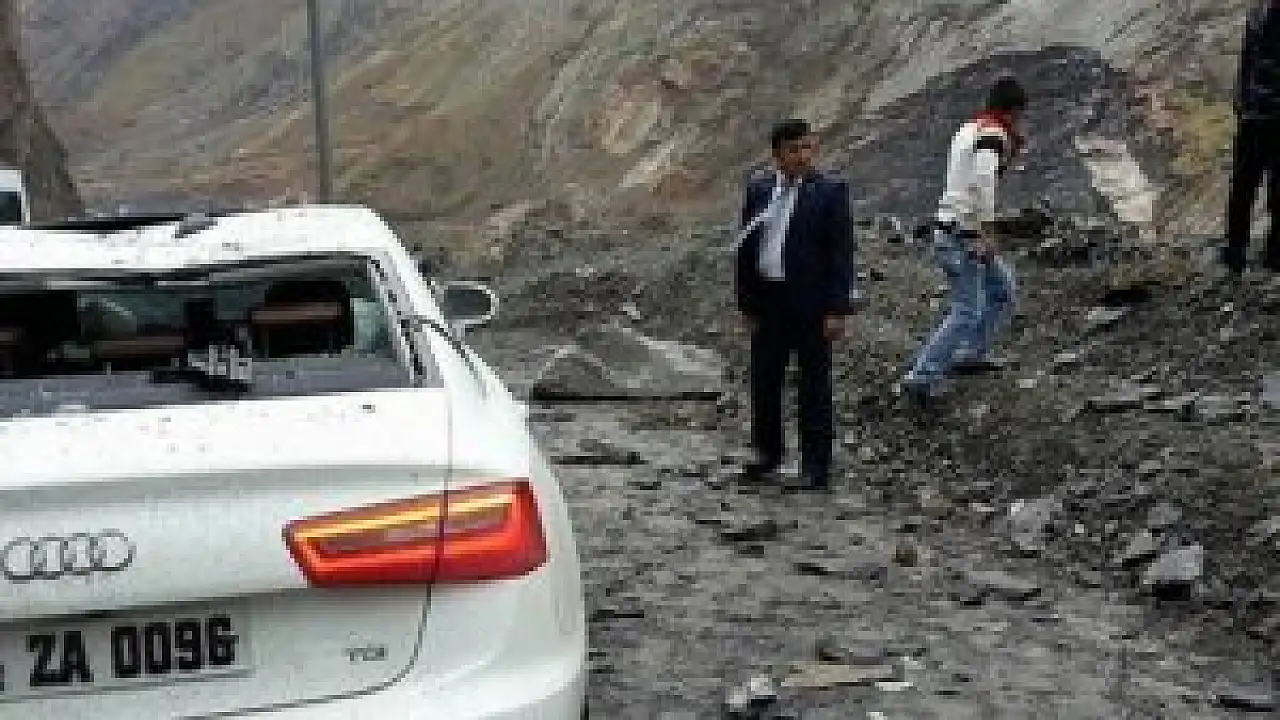 Hakkari-Van karayolunda seyreden bir aracın üzerine kaya düşerken, sürücü ise şans eseri yara almadan kurtuldu.