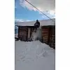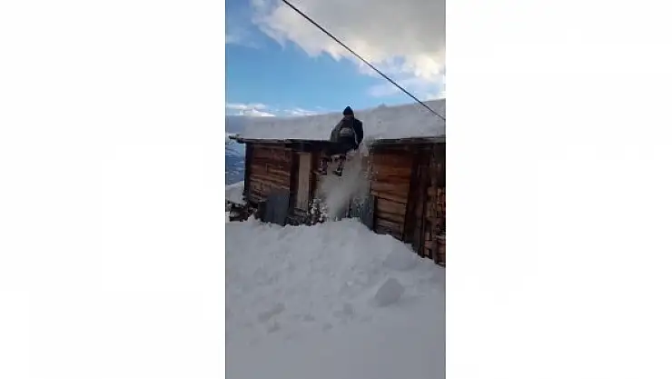 Artvin'de yaşayan 60 yaşındaki Eyüp Saymaz ve 20 yaşındaki torunu Ömercan Tekin köylerine yoğun kar yağınca, tahta kızakla alışılmışın aksine yola çıkarak değil evlerinin çatısına çıkarak kaydılar.