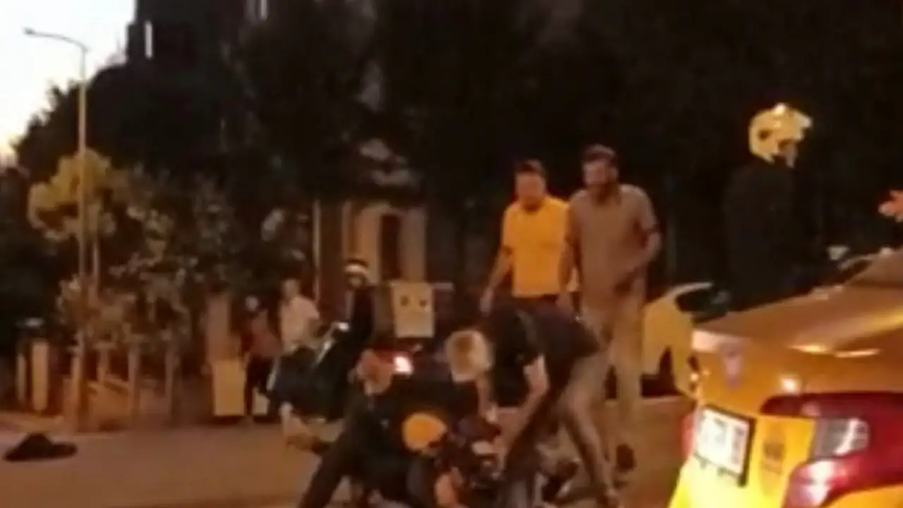 İstanbul Ataşehir'de cip sürücüsü ve yanındaki kişi, trafikte tartışma yaşadığı motokuryeyi darbetti. Ortalığın savaş alanına döndüğü olay cep telefonu kamerasına kaydedildi. Saldırganlardan şikayetçi olan motokurye adaletin yerini bulmasını istediğini söyledi.