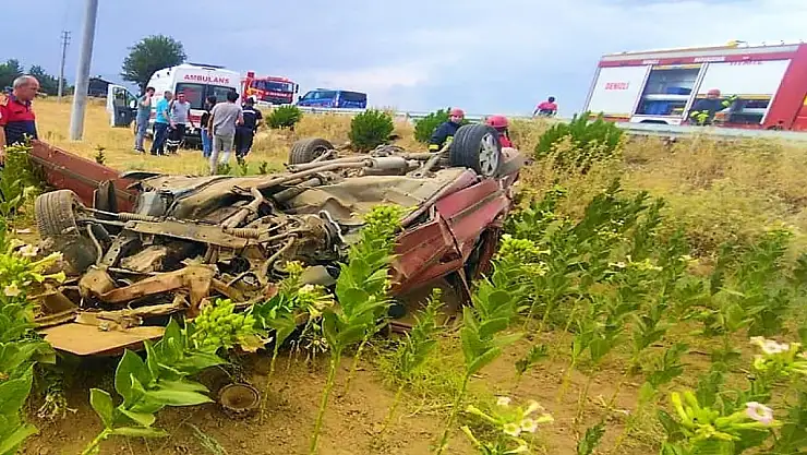 Kazada taklalar atarak hurdaya dönen araç, çekici vasıtasıyla tarladan kaldırıldı. Kazayla ilgili soruşturma başlatıldı.