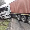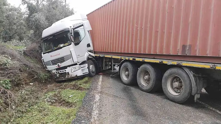 Yoldan çıkan tır trafiği kapattı