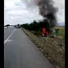 Yoldan çıkarak devrilen araç yandı!