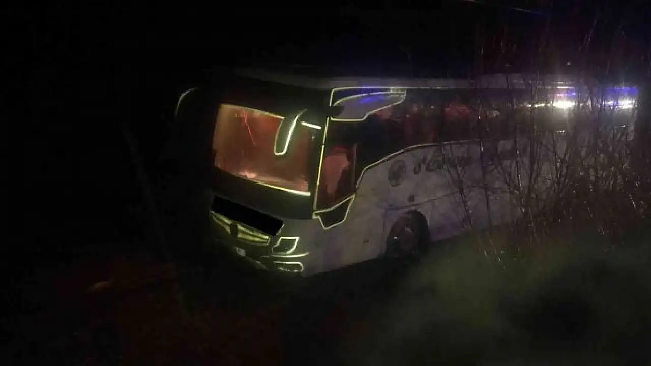 Erzincan'da yağış nedeniyle kayganlaşan yoldan çıkarak tarlaya giren otobüsteki 2 yolcu yaralandı.