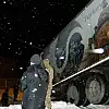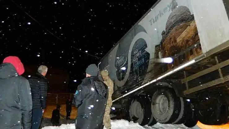 Ardahan'ın Posof ilçesinde etkili olan kar yağışı trafik kazalarına neden oldu. Yıldan kayan tır evin bahçesine girdi.