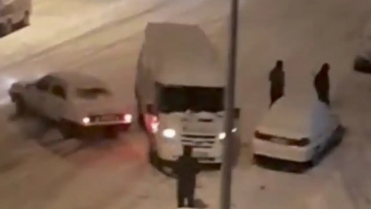 Cep telefonu kameralarına yansıyan görüntülerde ise, bir otomobilin yoldan çıkamayan minibüse çarpma anı yer alıyor.