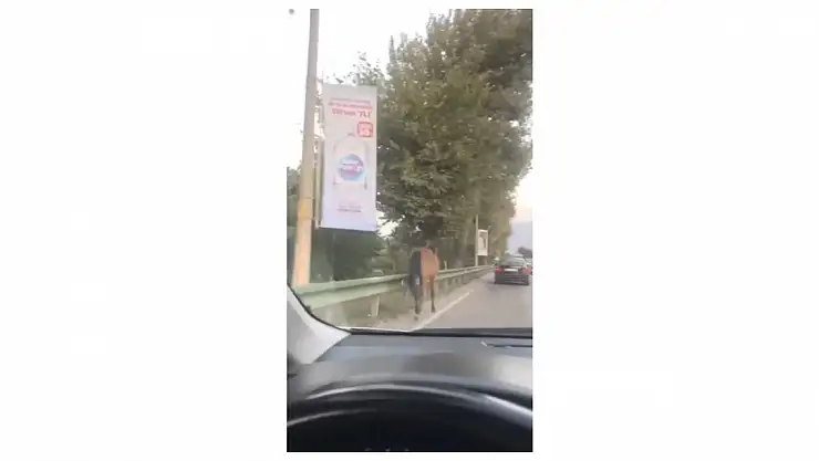Merkez Osmangazi ilçesi Yakın Çevre Yolu'nda başıboş at, ana yolda gezerek tehlike saçtı. Neyse ki başıboş at, olması muhtemel bir kazaya sebep vermeden gözden kayboldu. Diğer bir görüntüde ise, başıboş at trafiğin akış yönünün tersine en sol şeritten gitti. O anlar çevrede bulunan bir vatandaşın cep telefon kamerasına yansıdı.