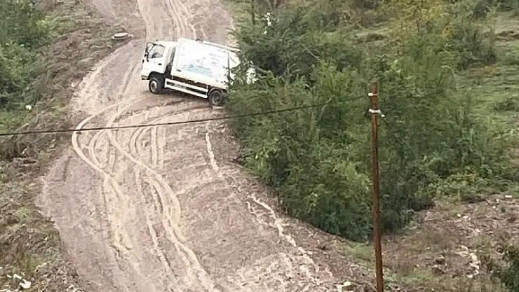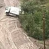 Zonguldak'ın Çaycuma ilçesinde aşırı yağış nedeniyle yolları su basarken, yolu olmayan 'Sofia Evleri'nde belediyenin çöp kamyonu kayarak çamura saplandı.