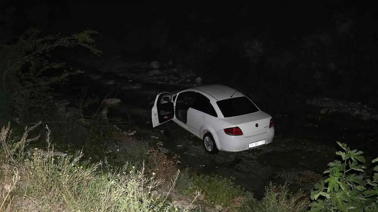 Bolu'da, belediyeye ait boş arazide alkol alan sürücü şantiye görevlisinin tüm uyarılarına rağmen yolu şaşırarak otomobiliyle dereye uçtu.