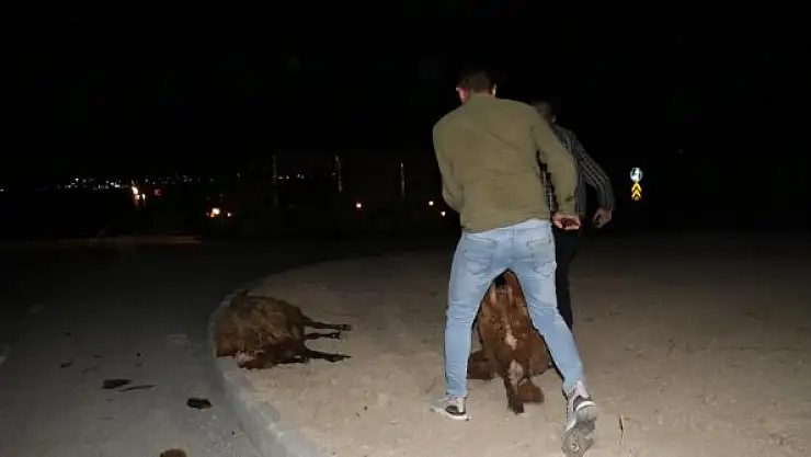 Yolun karşısına geçmek isteyen sürüye otomobil çarptı