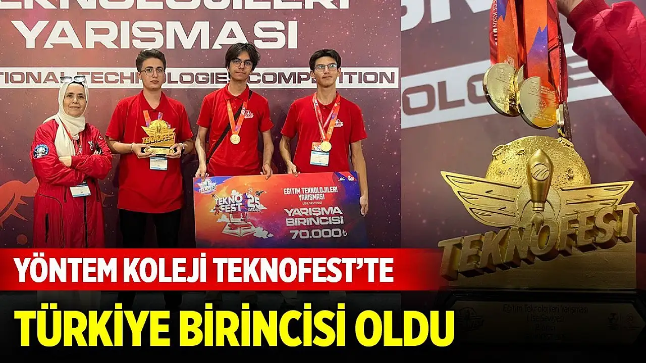 Konya Özel Yöntem Koleji, TEKNOFEST 2025 İstanbul'da Eğitim Teknolojileri Yarışması'nda 'MEGA ARGE' adlı takımının Türkiye Birincisi olmasıyla, Konya'ya bu gururu yaşatan okullardan birisi oldu.