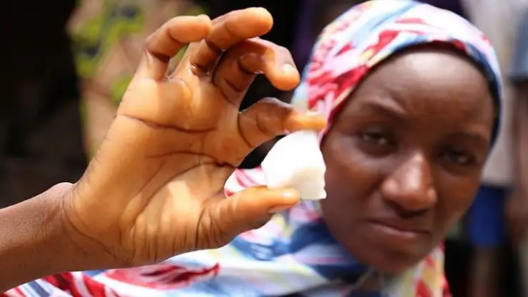 Temiz suya ulaşmakta güçlük çeken Nijeryalılar, göletlerden topladıkları yosun tutmuş çamurlu suları Türkiye'de 'şap taşı' olarak bilinen alum taşıyla temizleyerek içiyor.