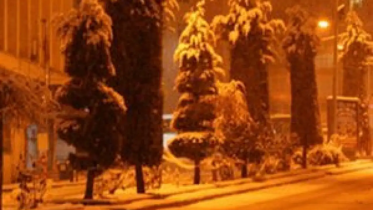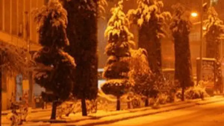Yozgat'ta akşam saatlerinde başlayan kar yağışı şehri beyaza bürüdü.