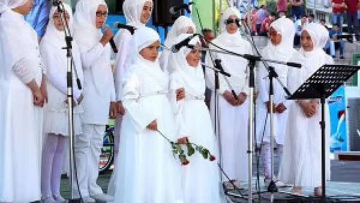 Cumhuriyet Meydan'ında gerçekleştirilen programda Kur'an Kursu öğrencileri kursta öğrendikleri ayet, dua ve ilahileri okudu.