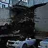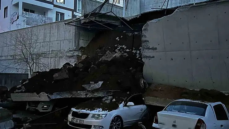 Yozgat'ta istinat duvarı çöktü, 11 araç hasar gördü