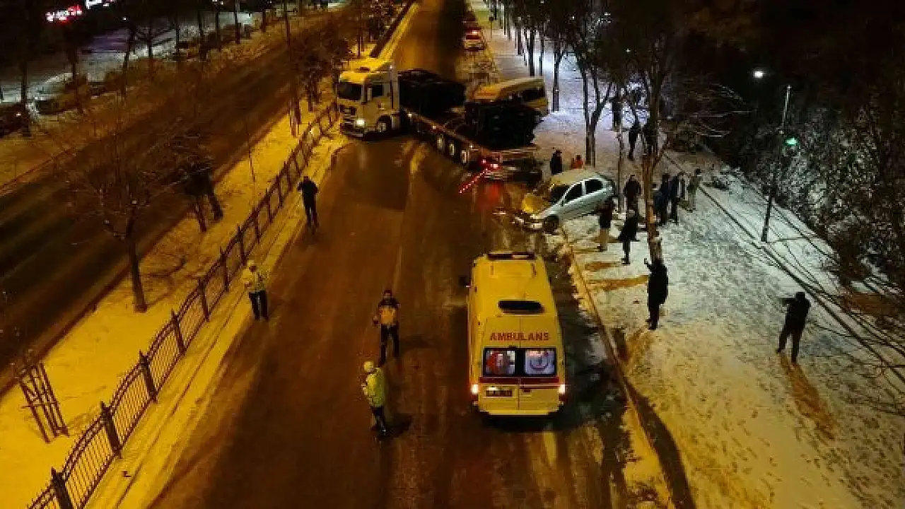 Yozgat'ta kar yağışı sonrası hava sıcaklığının hissedilir derecede düşmesi nedeniyle yolda oluşan buzlanma kazalara neden oldu. 15 aracın karıştığı kaza anı saniye saniye kameralara yansıdı.