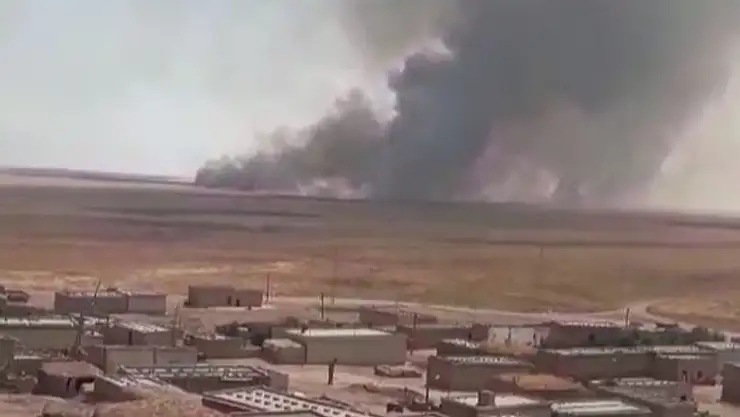 Suriye'de terör örgütü YPG/PKK işgalindeki Aynularab (Kobani) ve Kamışlı ilçelerinde onlarca köydeki tarım arazilerinde yangın çıktı.