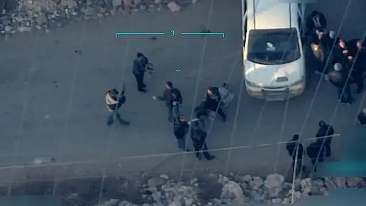 Footage captured by a Turkish army drone shows a convoy of civilian vehicles at a YPG/PKK checkpoint seeking to leave Afrin.