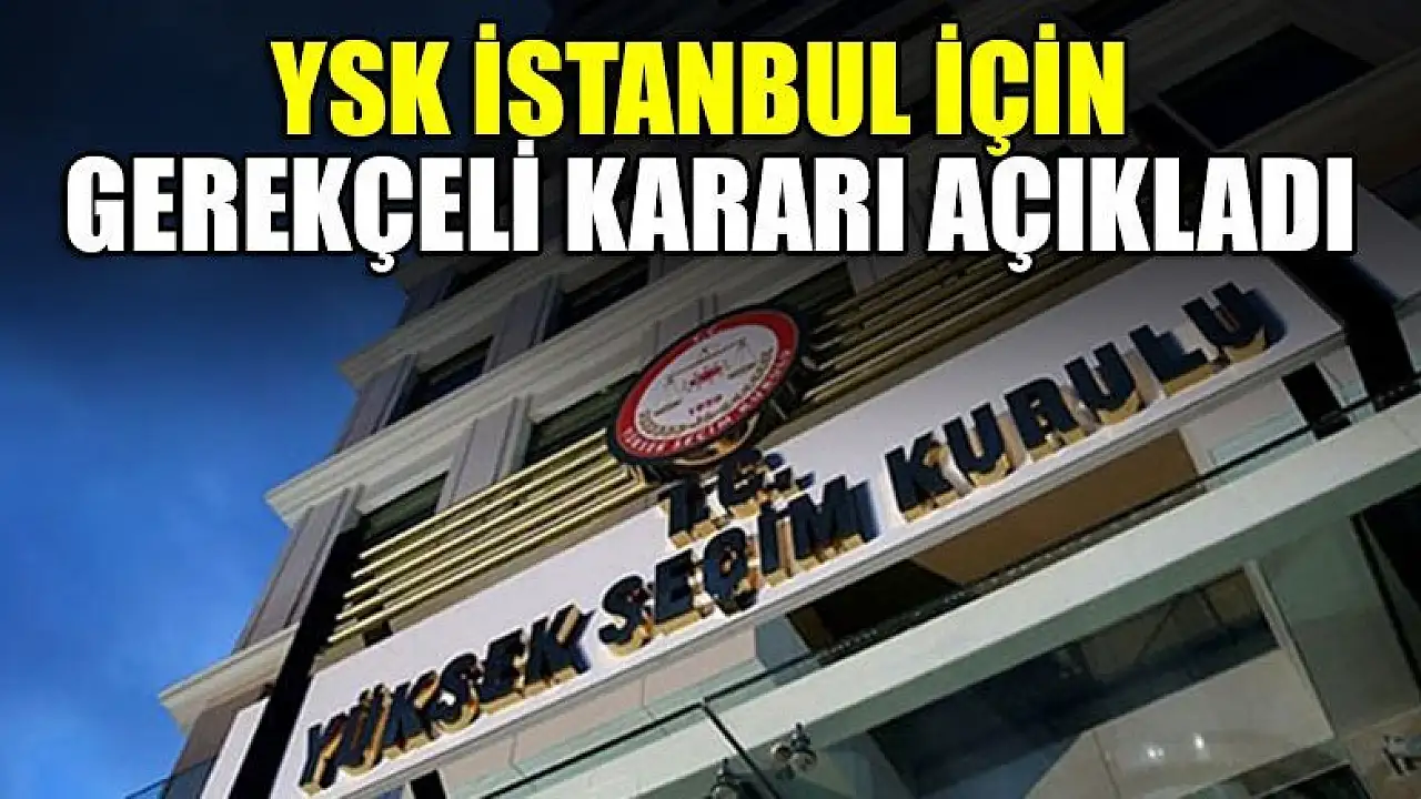 YSK'nin, İstanbul Büyükşehir Belediye Başkanlığı seçiminin iptaline ilişkin 4'e karşı 7 üyenin oy çokluğuyla aldığı kararın gerekçesi açıklandı. İşte YSK'nın açıkladığı gerekçeli kararın tamamı