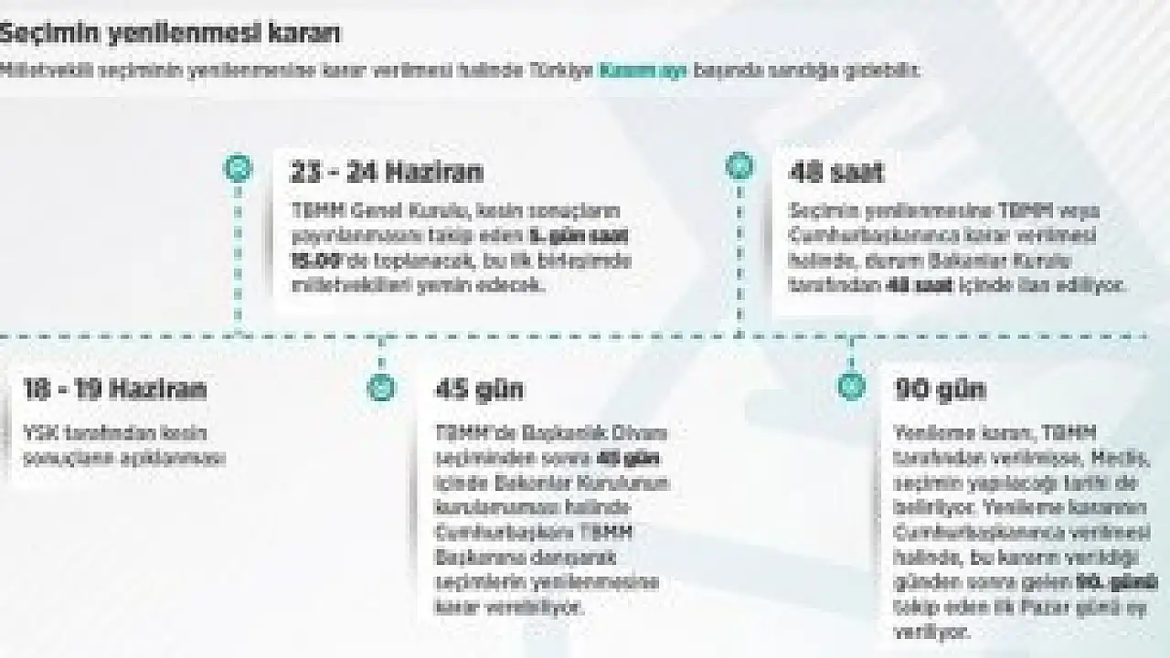 Anayasa'nın 116. maddesi gereği, yeni seçilen TBMM'de Başkanlık Divanı seçiminden sonra 45 gün içinde Bakanlar Kurulunun kurulamaması halinde Cumhurbaşkanı, TBMM Başkanına danışarak seçimlerin yenilenmesine karar verebiliyor. Yenilenme kararı Resmi Gazete'de yayımlanıyor ve seçime gidiliyor.