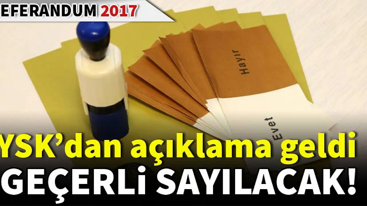 Yüksek Seçim Kurulu (YSK) Başkanı Sadi Güven, Hatay Reyhanlı'da 'tercih' yerine 'evet' yazılı mühür kullanılarak oy verilmesine ilişkin, "O oyların da geçerli kabul edilmesine karar verdik" açıklamasını yaptı. Güven, yaptığı yazılı açıklamada, "Oy pusulalarının arkasına basılması gereken YSK mühürlerinin ön tarafa basılmasına ilişkin olarak da, pusulaların geçerli olmasına karar verdik" diye kaydetti.