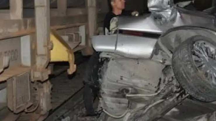 Yük treni otomobile çarptı: 2 yaralı