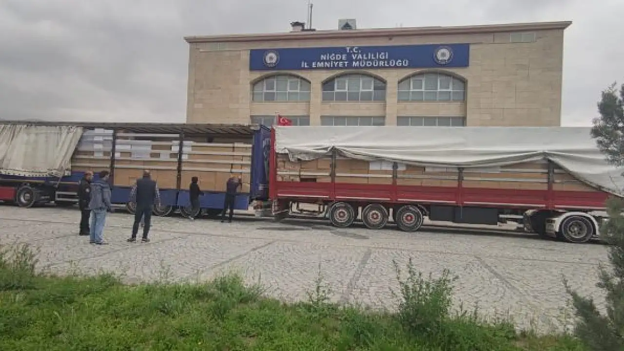 NİĞDE'nin Ulukışla ilçesinde polisin şüphe üzerine durdurduğu 2 TIR'da gümrük kaçağı 20 milyon 160 bin makaron ele geçirildi.