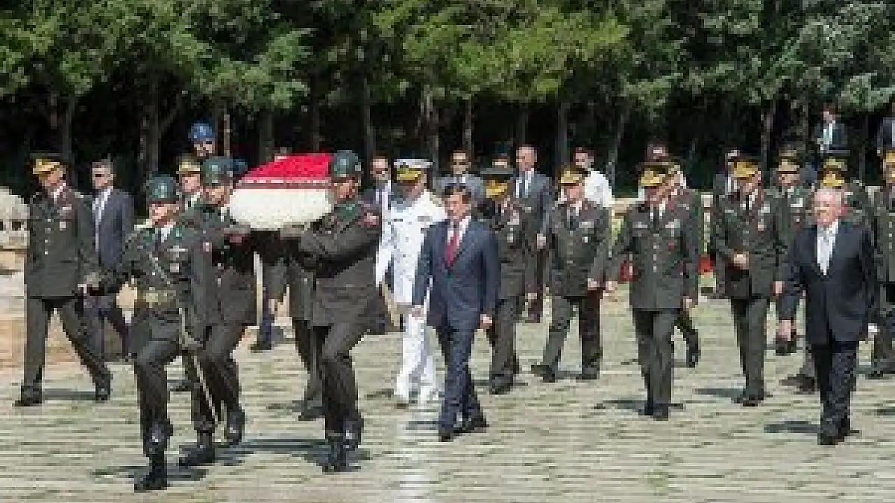 Davutoğlu, Anıtkabir'e gelişinde, Aslanlı Yol'un başında komutanlar tarafından karşılandı. Daha sonra YAŞ üyeleri, Başbakan Davutoğlu'nun başkanlığında, üzerinde "YAŞ üyeleri" yazan çelenkle Aslanlı Yol'dan yürüdü.