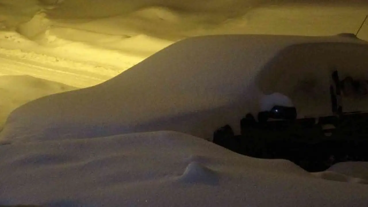 Hakkari'nin Yüksekova ilçesinde akşam saatlerinde yoğun kar yağışı etkili olurken, park halindeki araçlar kar altında kaldı.