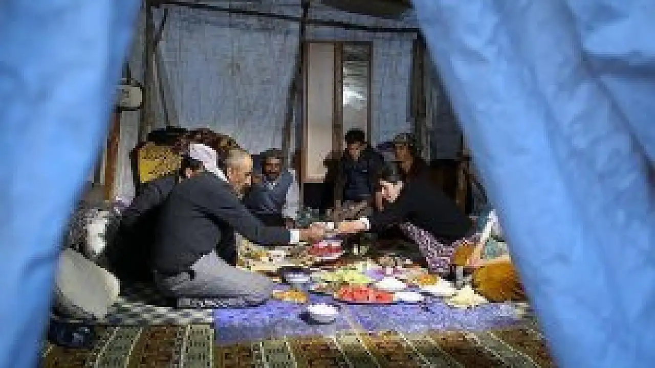 Sokağa çıkma yasağının kısmi zamanlı kaldırıldığı Yüksekova'da, terör örgütünün saldırıları nedeniyle evleri hasar gören vatandaşlar çadırlarda iftar açtı.