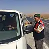 Jandarmanın şeker ikramı ise araç sürücülerini ve yanlarında bulunanları memnun etti.