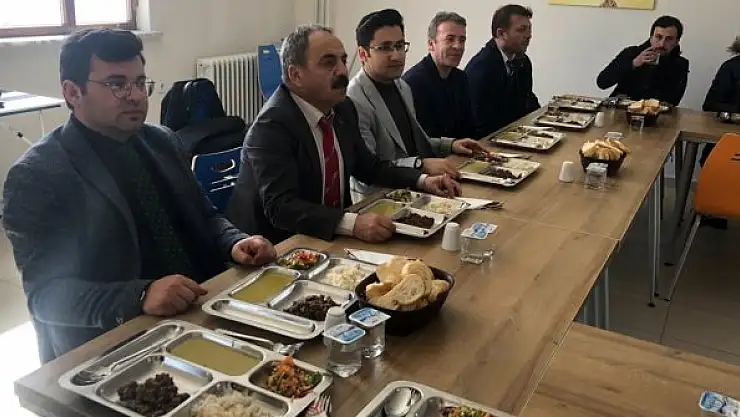 Öğrencilerle yemek yiyen Kaymakam Karahan ve beraberindekiler, öğrencilerin kullandığı etüt salonları, yatakhane ve yemekhane bölümlerini gezerek pansiyon hakkında bilgi aldı.