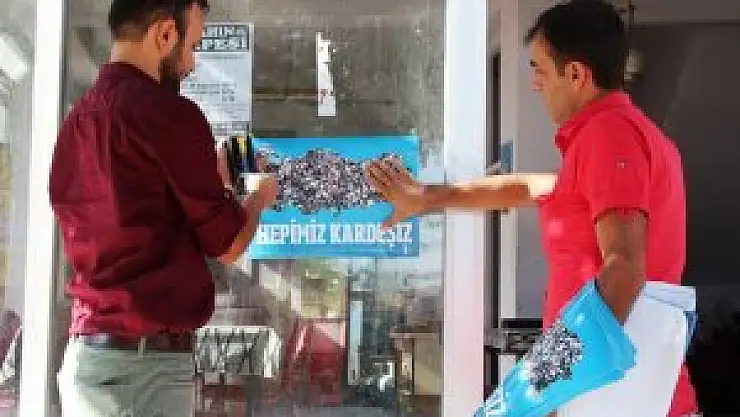 Yunak ilçesinde yaşayan Türk ve Kürt kökenli vatandaşlar, Türkiye Esnaf ve Sanatkarları Konfederasyonu'nun bastırmış olduğu 'Hepimiz Kardeşiz' yazılı afişleri iş yerlerine asarak barış ve kardeşlik mesajı verdi.